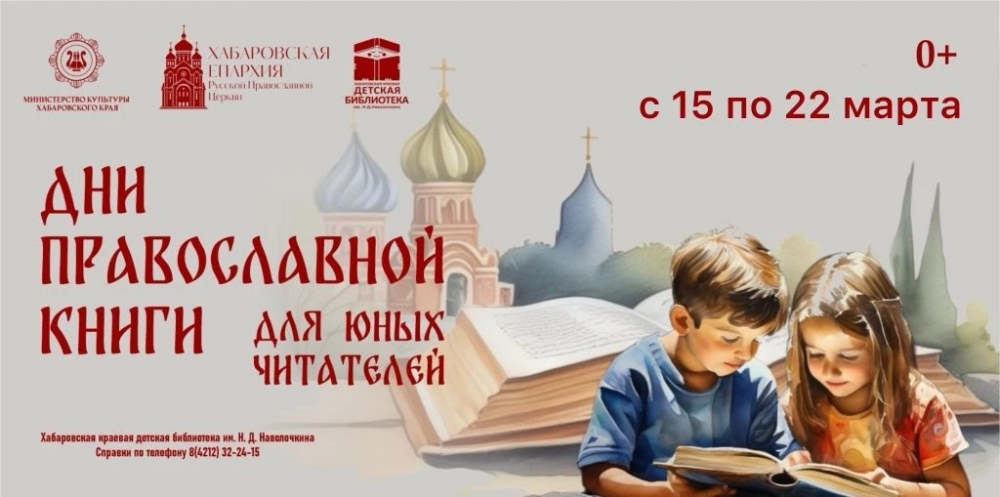 С 15 по 22 марта 2026 года в рамках Дня православной книги юные хабаровчане посетят мероприятия в Краевой детской библиотеки им. Н.Н. Наволочкина, где познакомятся с миром православной литературы для детей.